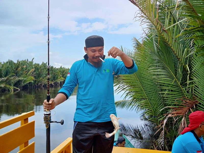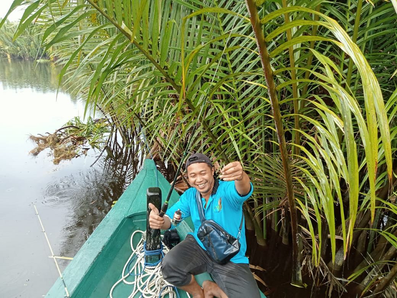 Pangkalan Bun, Perumdam Tirta Arut – Salah satu peserta lomba memancing mendapatkan ikan.